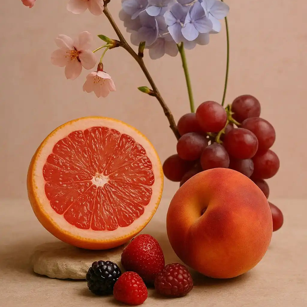 Grapefruit, Peach, Berry, Cherry Blossom, Hydrangea, Lavender, Vanilla, Musk